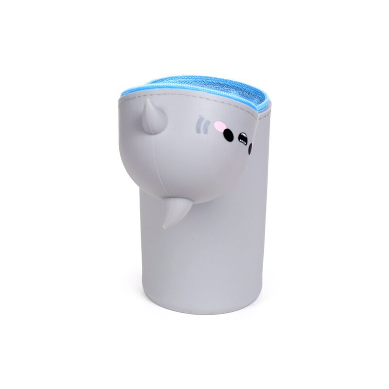 This Adoramals Archie the Shark upright pencil case is made from silicone with metal, polyester, and nylon details for added durability. The upright design allows it to stand on a desk, making it easy to access pens and pencils.
